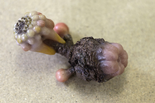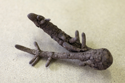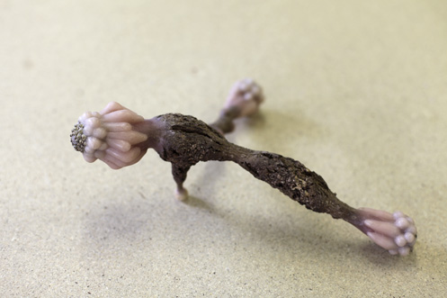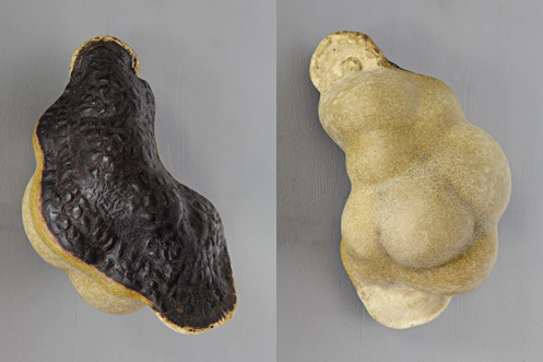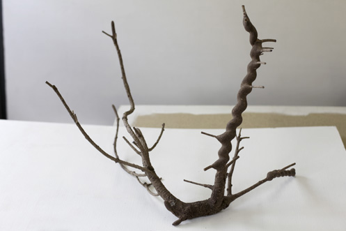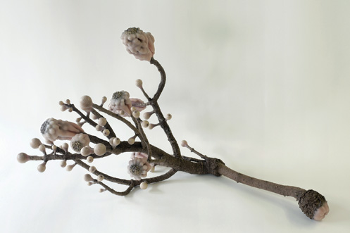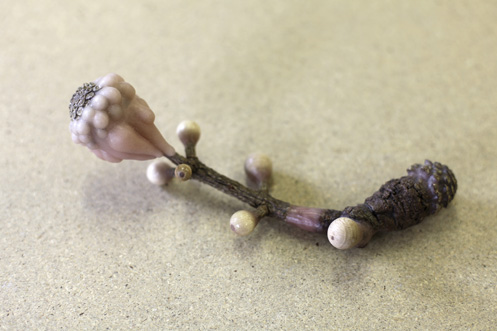 Objekte gebaut aus Naturobjekten, Holzkugeln, Wachs, Rinde, Leim, Plastikfolie