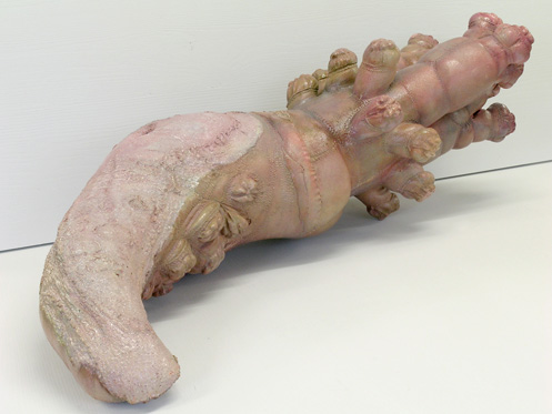 Auch ich verfahre in diesem Sinne. Mit Silikon nehme ich im Wald Abformungen von Wundholz, im Atelier nähe ich pflanzenartige Gebilde. Füge beides zusammen und giesse die flexible Negativform mit Gips aus. Aus der Narbe wächst so frisches Gewebe, etwas Schönes oder Zerstörendes?