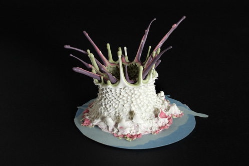 Daraus entstand eine Objektgruppe aus eingefärbtem, dehnbarem Silikon.